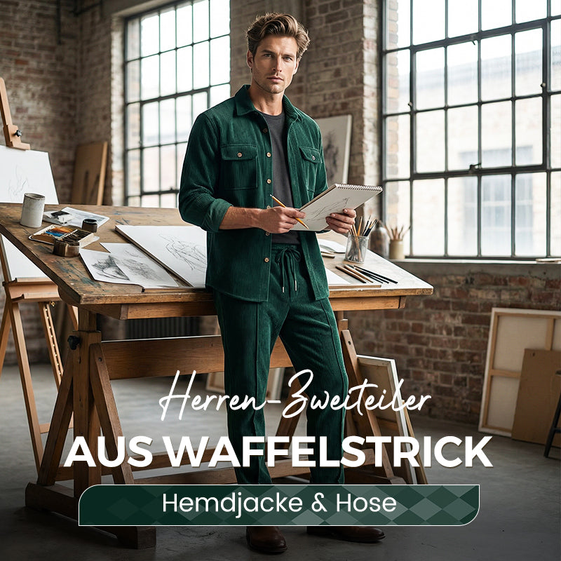 🔥Solange der Vorrat reicht 50 % Rabatt!🎉Herren-Set aus Waffel-Button-Down-Jacke und Hose