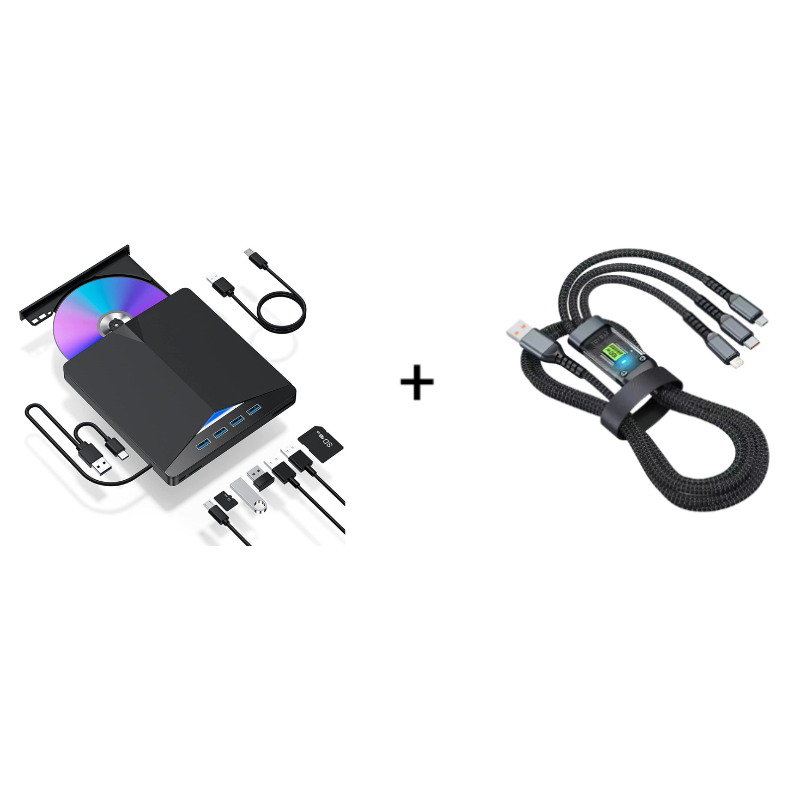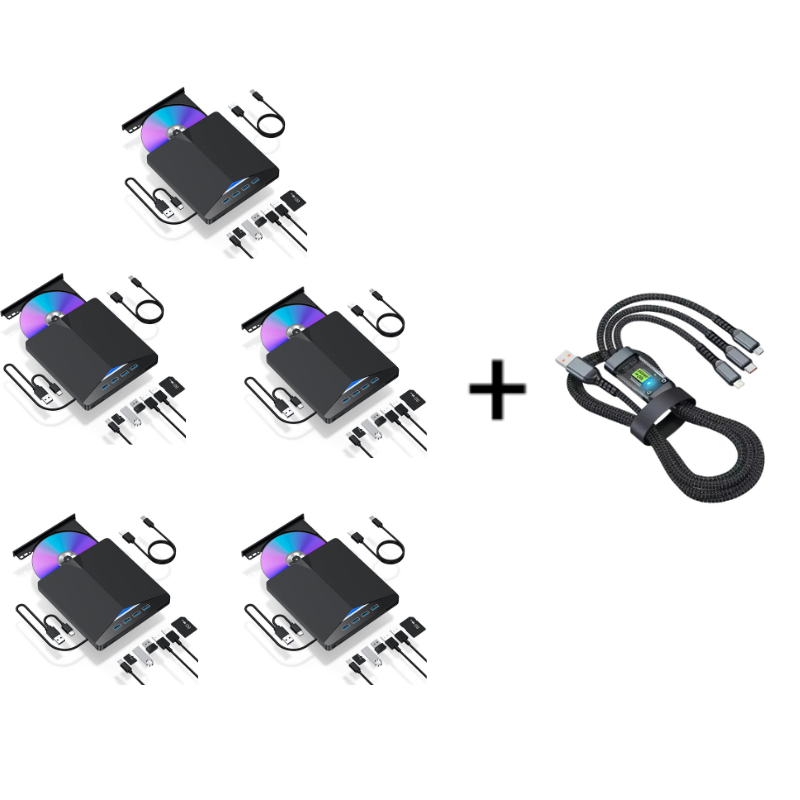7-IN-1-MULTIFUNKTIONALER HUB – Mehr als nur ein einfaches Laufwerk. Dieses Gerät erweitert Ihre Konnektivität mit vier USB-Anschlüssen, einem Kartenleser und einem TF-Kartenleser, vereinfacht Ihren Arbeitsplatz und ermöglicht Ihnen, alles gleichzeitig anzuschließen.