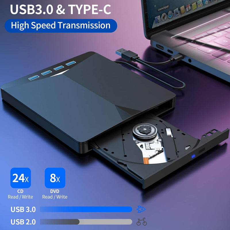 Externes CD/DVD-Laufwerksgehäuse mit USB 3.0 & RGB-Beleuchtung – Multifunktional & Kabellos ordentlich! 💻✨