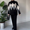 Modische Farbe-Blocking-Set aus Pullover und Hose mit Rautenmuster