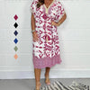 ✨Bedrucktes Freizeitkleid mit V-Ausschnitt und Fransen an den kurzen Ärmeln