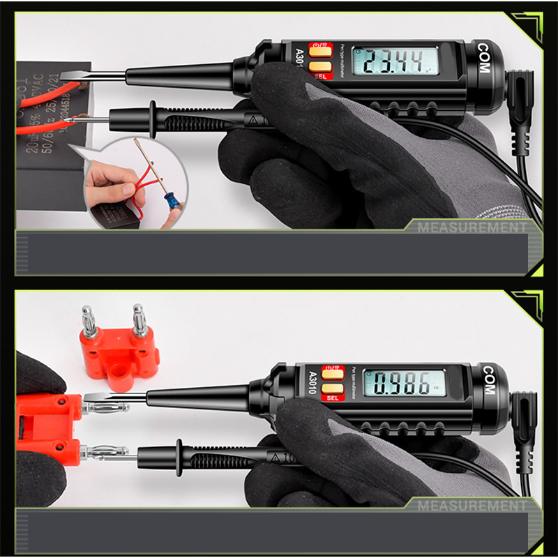 PEN-STYLE-DESIGN – Bietet hervorragende Tragbarkeit und ermöglicht eine einfache Einhandbedienung, sodass es bequem in der Tasche mitgenommen und in engen oder schwer zugänglichen Räumen für eine schnelle elektrische Diagnose verwendet werden kann.