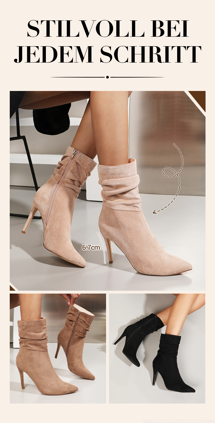 👠Kurze Damenstiefel mit hohem Absatz und spitzer Zehe