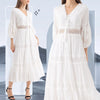 ❤️🎉Bequeme Urlaubskleider👗👉Weißes Boho-Midikleid mit V-Ausschnitt🌿🏖️