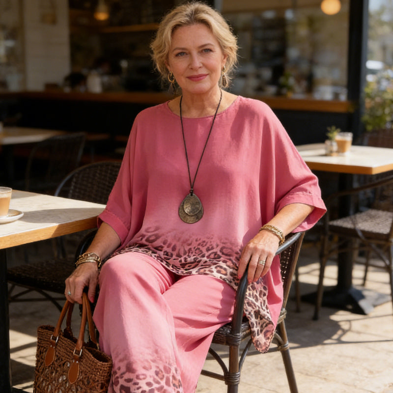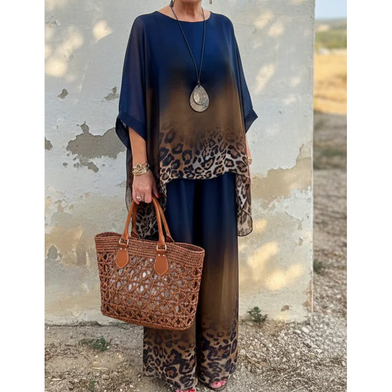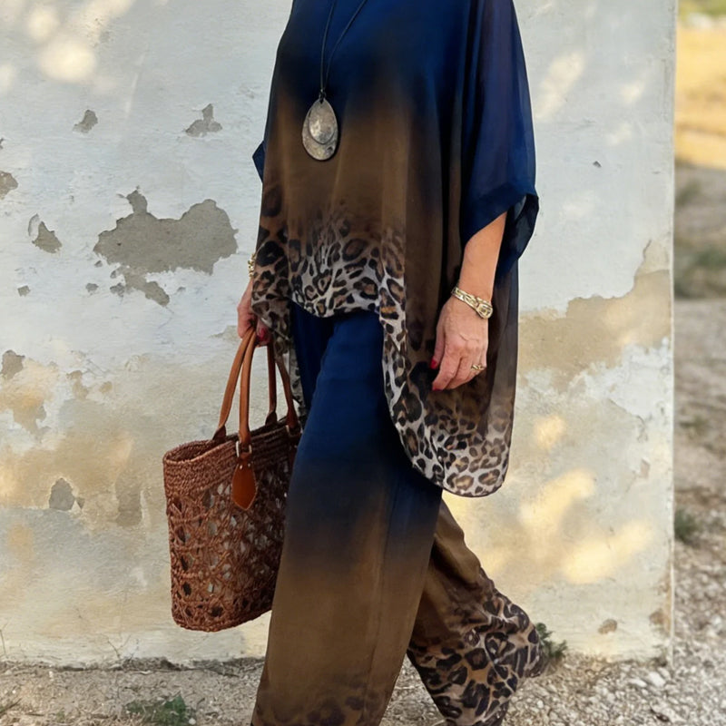 Zweiteiliges Set für Damen mit Leopardenmuster und Farbverlauf