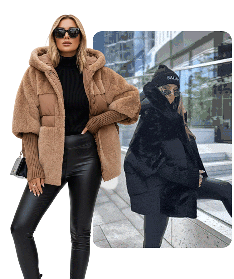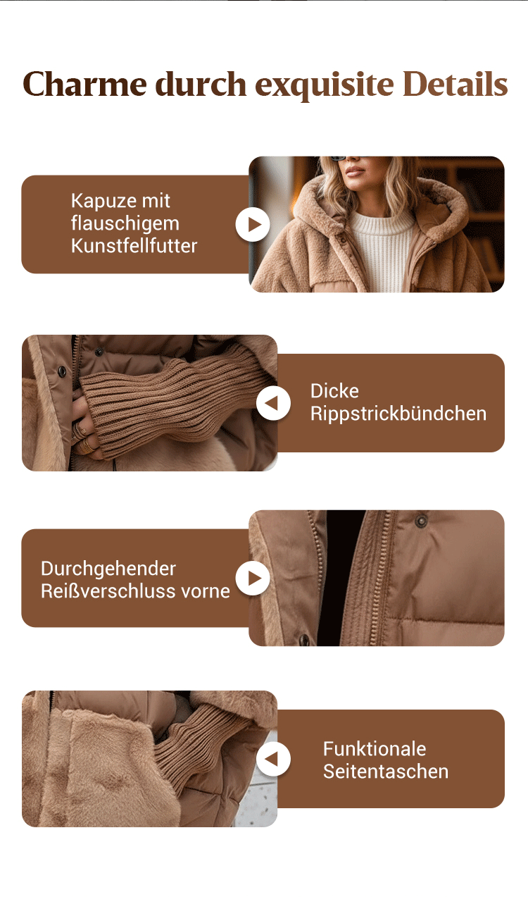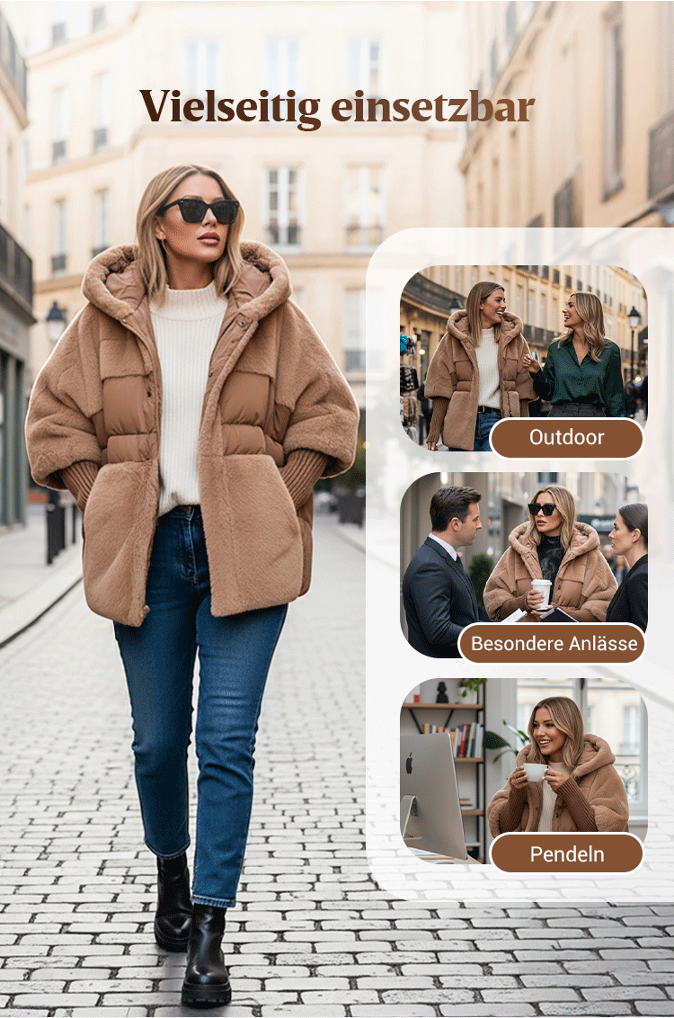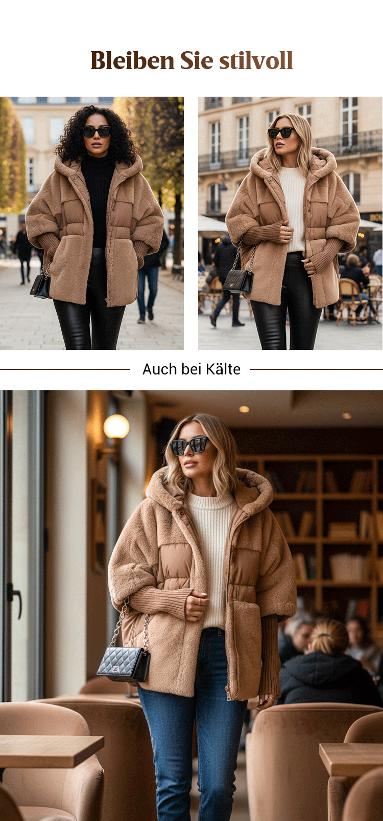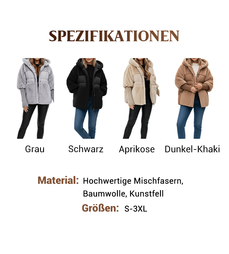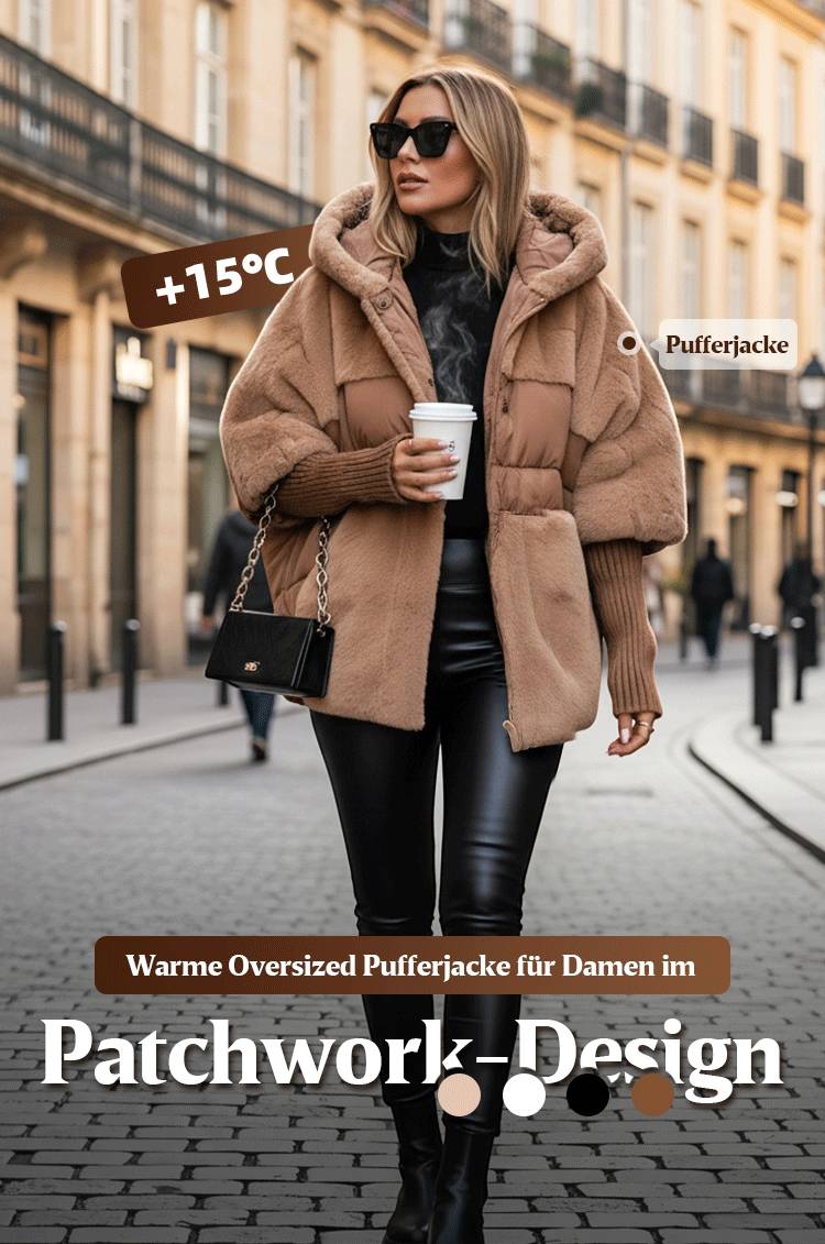Damen Oversized Pufferjacke mit Kapuze im Patchwork-Design