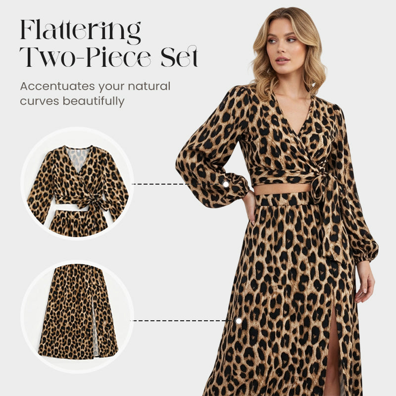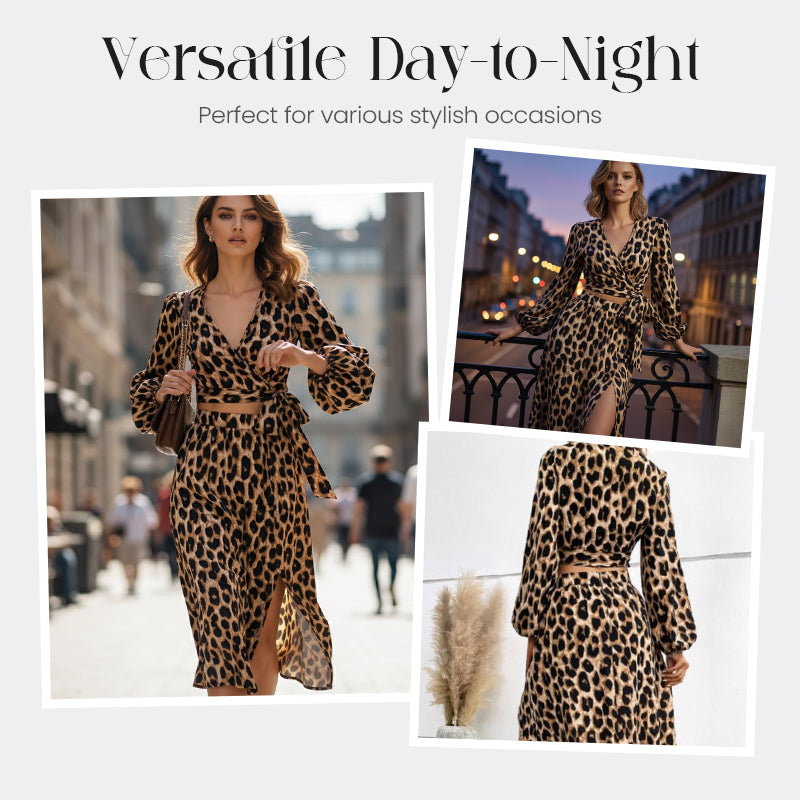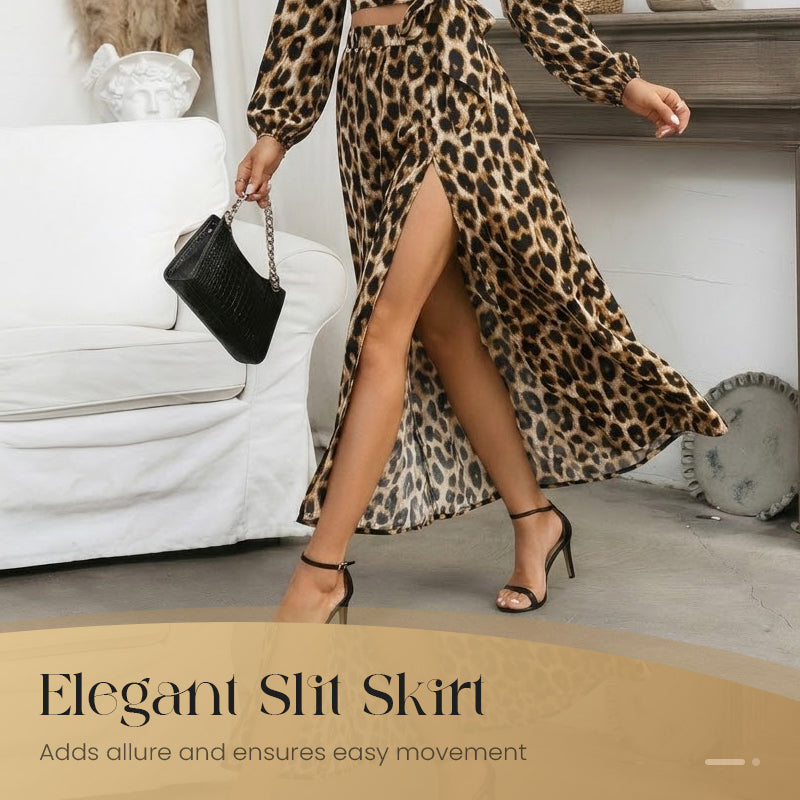 Package Includes: 1*Women's V-Neck Top and Leopard Print Skirt 2-Piece Set